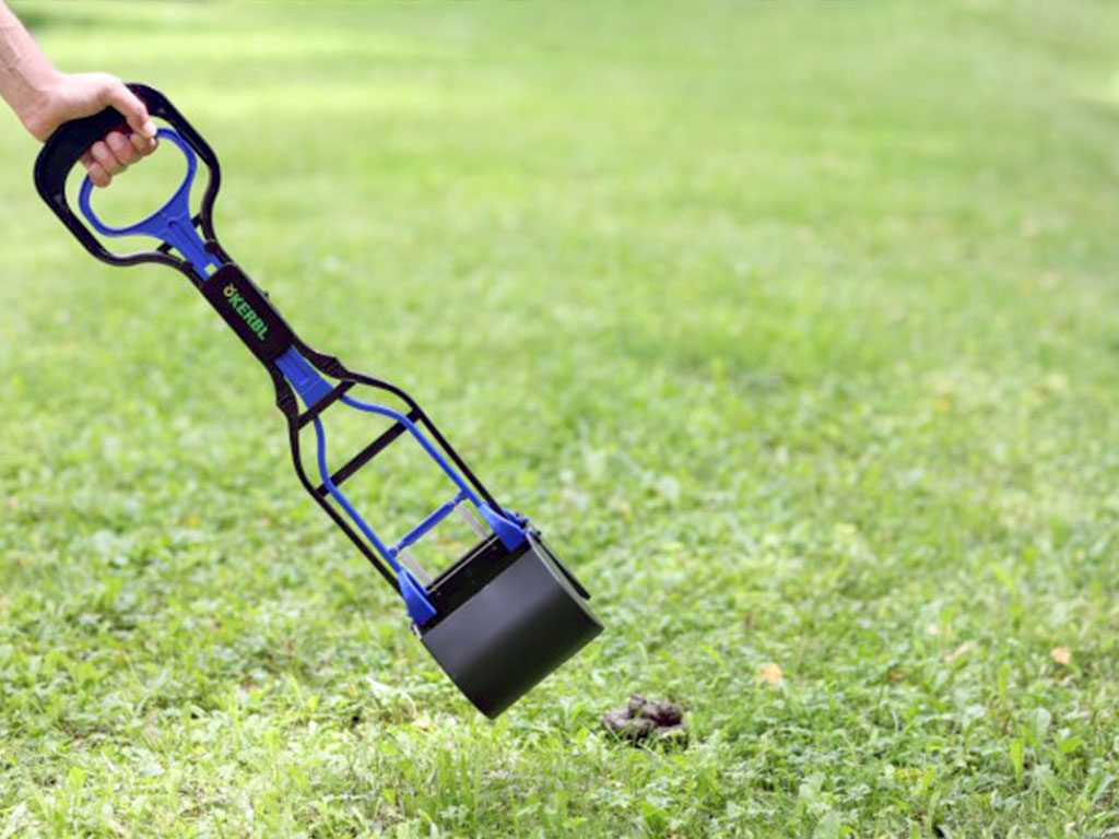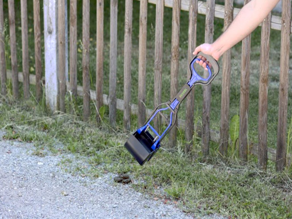 velká lopatka se zoubkovanými koncovkami pro snadné sbírání psích exkrementů