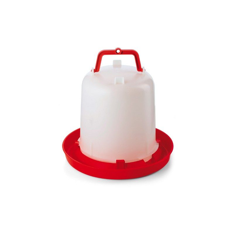 Klobouková napáječka pro drůbež s bajonetovým uzávěrem a držadlem k snadnému zavěšení.