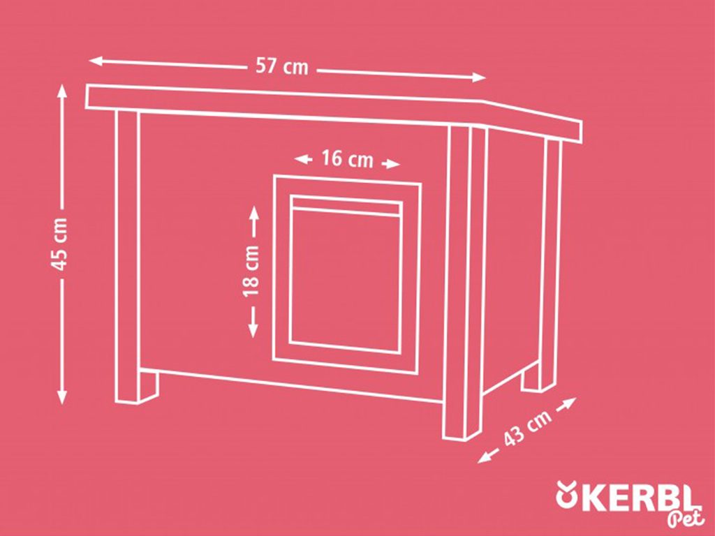 Vchod je krytý odnímatelným transparentním pruhovým závěsem, který chrání kočku před deštěm, částečně také před chladem nebo větrem a v teplém letním období je jednoduše demontovatelný.