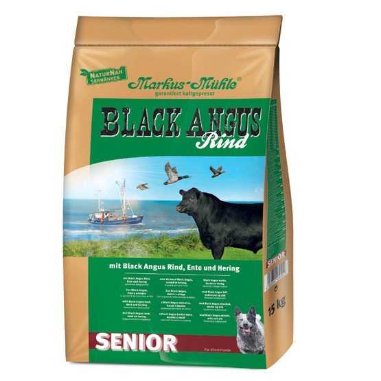 Granule Black Angus Senior byly vyvinuty pro vitalitu a fit život starších psů od 6 let věku Granule lisované za studena bez chemie s chutí a vůní použitých čerstvých surovin.