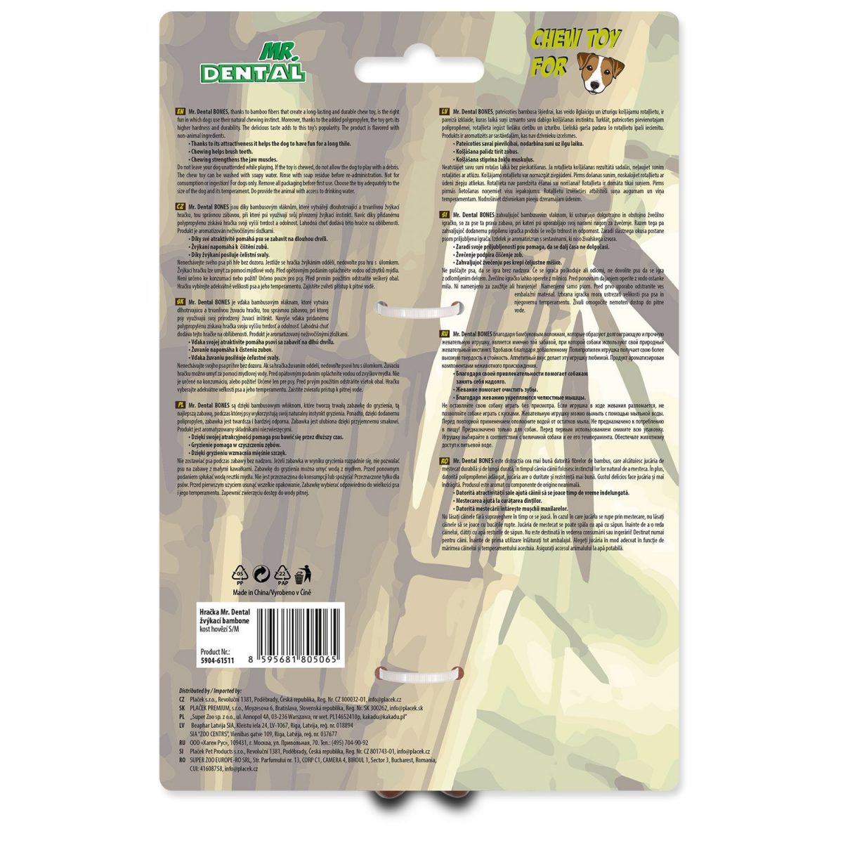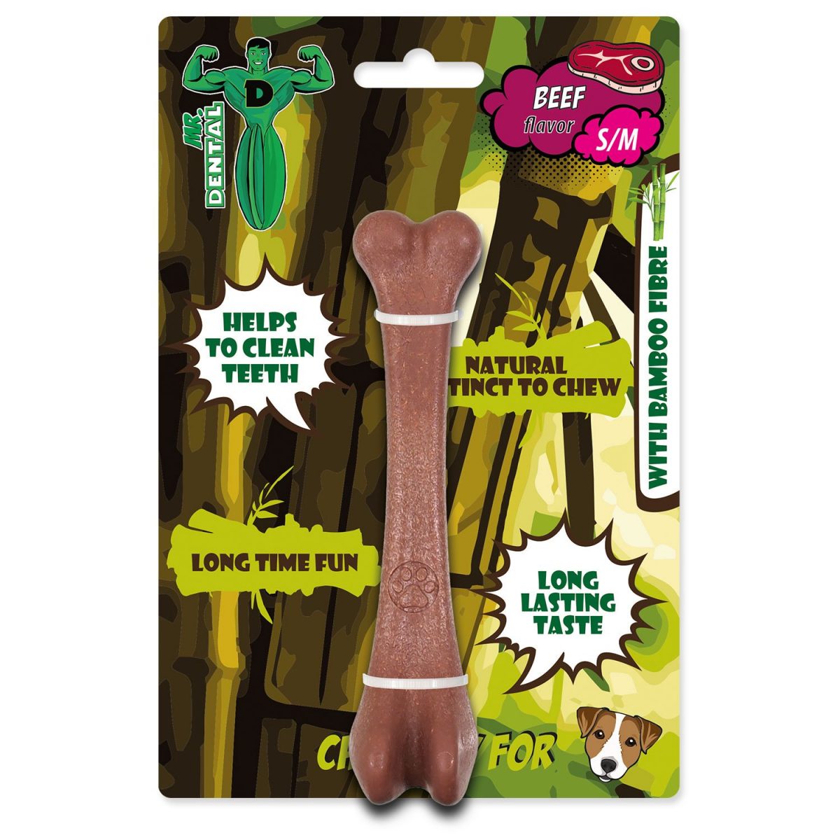Mr.Dental bambones jsou novodobou zábavou pro všechny velikosti a plemena psů, která vyhledávají zábavu v podobě žvýkání. Jsou tvořeny z 90% z PP (polypropylen) + zbylých 10% je bambusové vlákno.