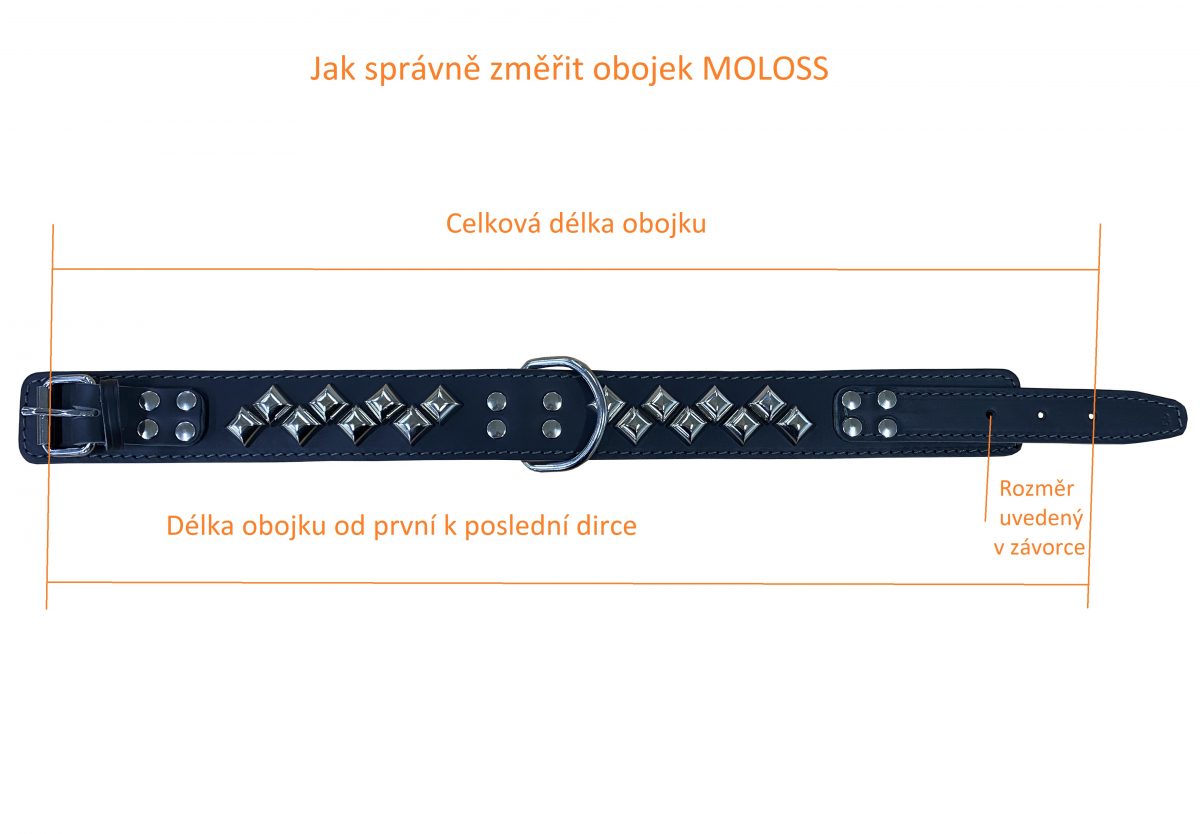 Rozměry: Šířka obojku 50 mm Délka obojku 55 - 61 cm (60 cm) V délce obojku je uveden rozměr od první k poslední dírce a celková délka.