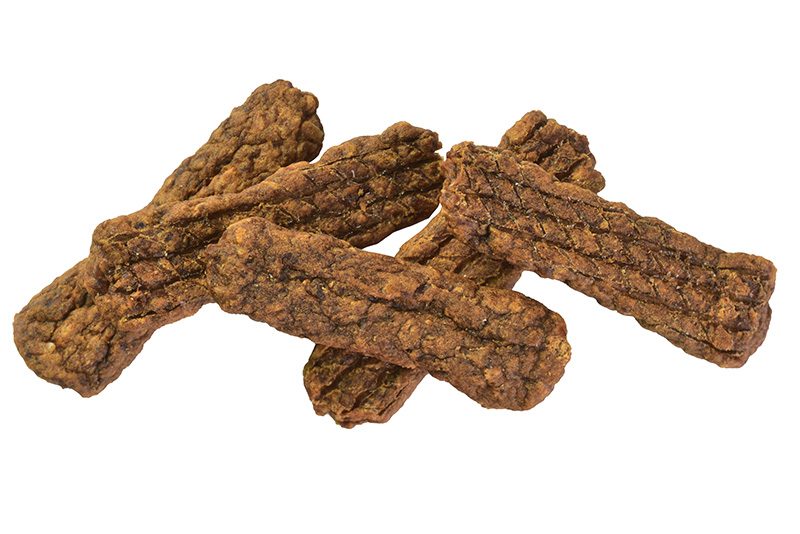 Lahodné pamlsky ze sušeného masa pro dospělé psy - proteinová tyčinka z jehněčího a kuřete.