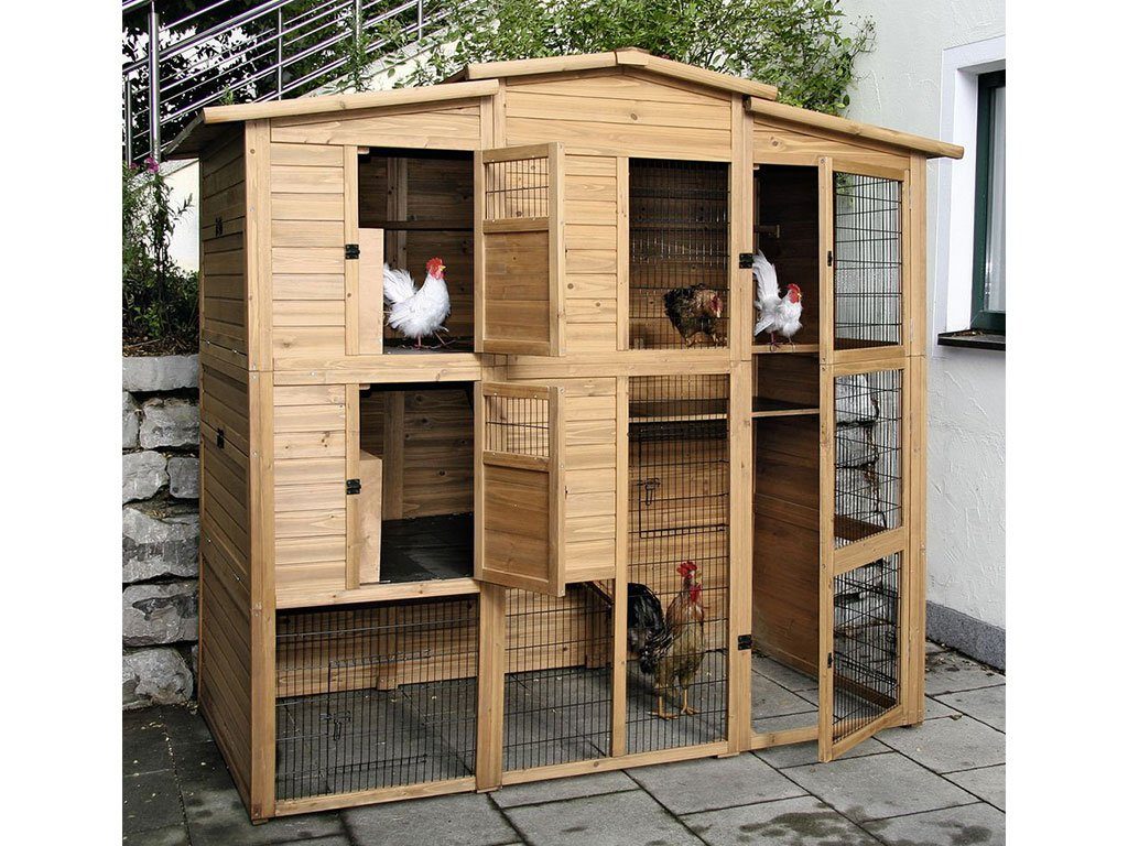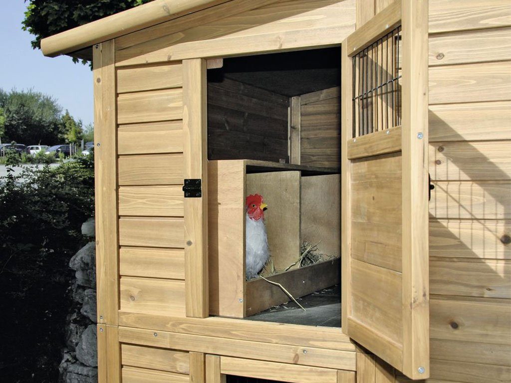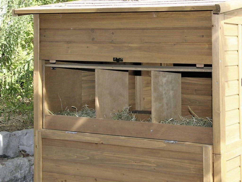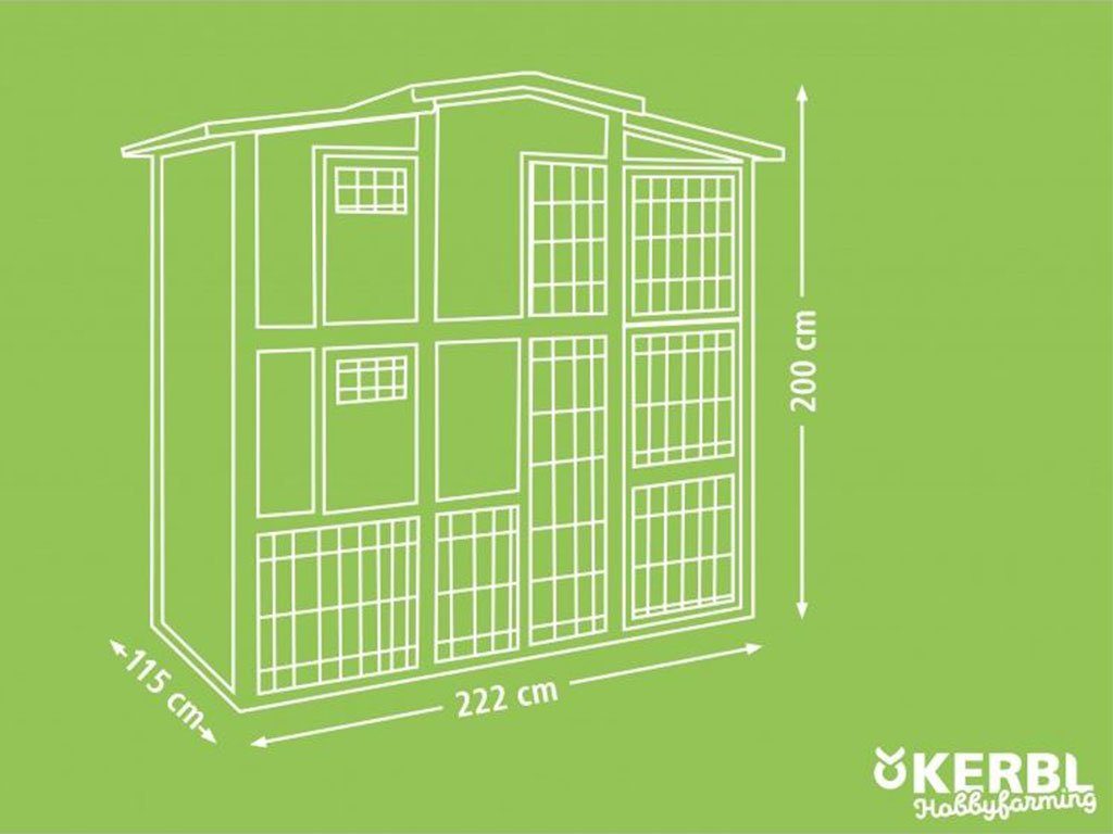 Dvoupatrový kurník pro slepice s výběhem, pro 6-10 slepic, 6 snáškových hnízd, 2 hřady, s šesti vstupy, 222x115x200cm. Pokud hledáte prostorný kurník pro až 10 slepic s krytým výběhem, pak pro Vás máme výbornou volbu. Kurník s dvěma patry, dvěma hřady a šesti snáškovými hnízdy poskytne slepicím prostorné a bezpečné zázemí. Slepice mají do kurníku pohodlný přístup z výběhu přes schůdky a posuvná dvířka. Cirkulaci vzduchu v kurníku zajistí okénka na předních dvířkách kurníku. Při čištění kurníku jistě oceníte 6 dvířek do výběhu i kurníku. Kurník vyrobený z lakovaného dřeva zajišťuje vysokou stabilitu.
