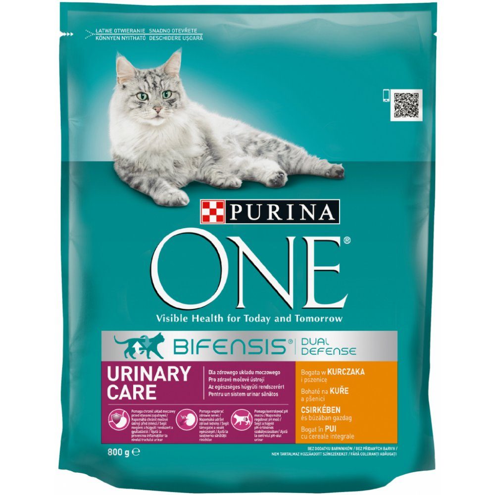 Kompletní krmivo pro dospělé kočky, pro podporu zdravého močového systému. Močové ústrojí vaší kočky je velice citlivé. V jakémkoli věku, ale zejména s přibývajícím věkem se zvyšuje riziko vzniku problémů s močovým ústrojím. Purina ONE Urinary Care obsahuje klíčové ingredience pro zdraví močového ústrojí a ledvin a pro ochranu před zánětem, a tím napomohá ke zdravějšímu, šťastnějšímu a lepšímu životu vaší kočky. Doporučená denní krmná dávka (g/den): Hmotnost kočky, množství krmiva2-4 kg 35-65 g 4-6 kg 65-100 g6-8 kg 100-130 g. Doporučené denní krmné dávky by měly být přizpůsobeny klimatickým podmínkám, úrovni aktivity a fyzické kondici zvířete. Čerstvá a čistá voda by měla být vždy k dispozici. Pokud podáváte krmivo Purina ONE poprvé, doporučujeme zavádět jej postupným přidáváním stále většího množství Purina ONE do stávajícího krmiva po dobu 7 dnů, aby se trávicí systém Vaší kočky snáze přizpůsobil novému krmivu.