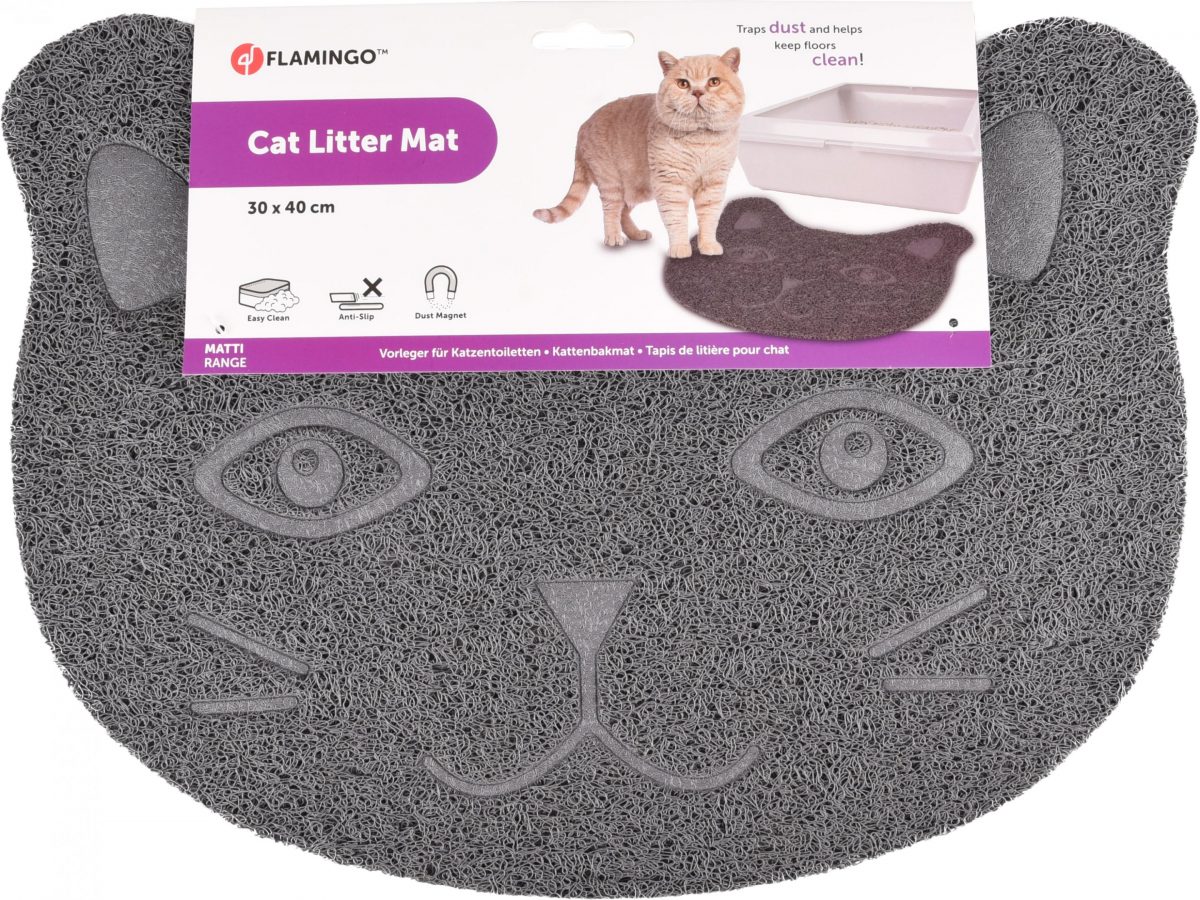 Podložka před toaletu pro kočky ve tvaru kočičí hlavy zachytí podestýlku, aby ji Vaše kočka neroznášela po bytě. Podložku pak jednoduše vytřepete.