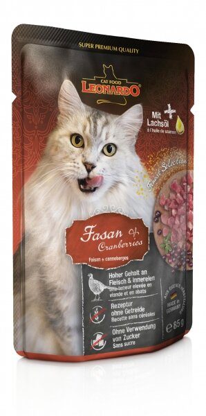 1 – 2 taštičky denně. Doporučujeme kombinovat s granulovanými krmivy Leonardo (20 g granulí odpovídá zhruba 1 kapsičce). Kočka musí mít celodenní přístup k čerstvé pitné vodě. Po otevření skladujte v ledničce a spotřebujte do 24 hodin.