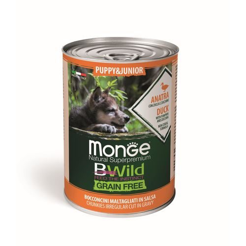 Kachní maso (26%), vepřová játra, kuřecí maso, lososový olej, droždí, sušená dýně 2% (odpovídá 8,6% čerstvé dýně), sušená cuketa 2% (odpovídá 8,6% čerstvé cukety), minerály, brambory, čerstvé borůvky, čerstvé brusinky, čerstvé maliny, xylo-oligosacharid (XOS 0,1%), yucca schidigera, spirulina (0,1%), glukosamin (0,019%), chondroitinsulfát (0,01%).