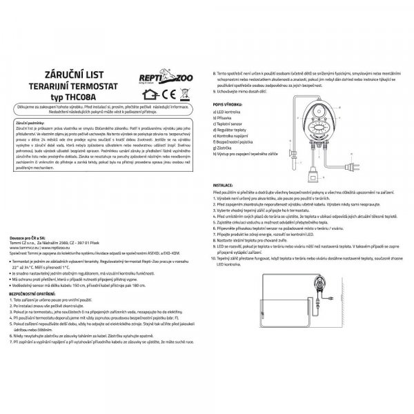 • Termostat udržuje v teráriu potřebnou teplotu, která je nastavitelná podle potřeb zvířete