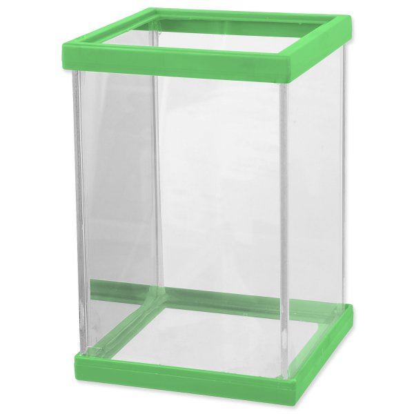 Skleněné bettárium s barevným rámečkem. Rozměry 10x10x15 cm