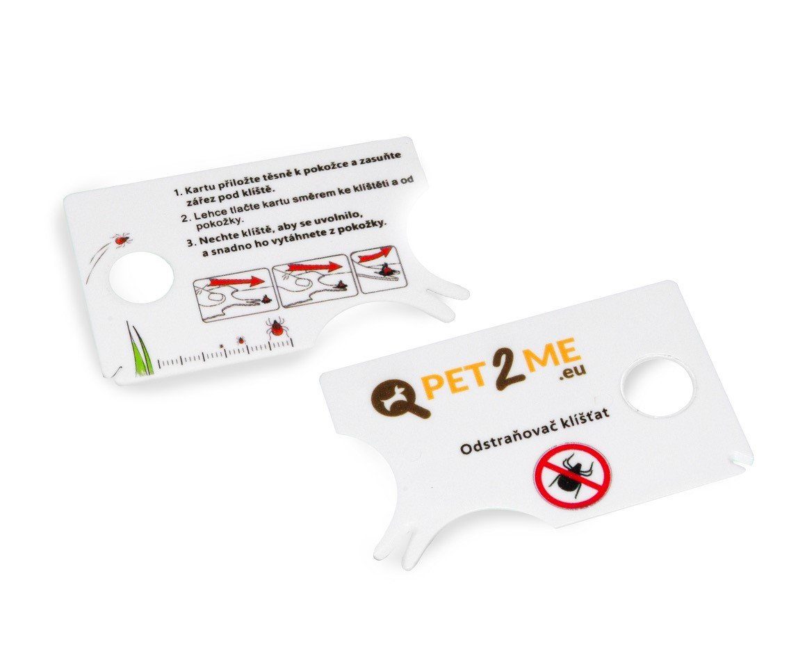 Praktický odstraňovač klíšťat Pet2Me s lupou. Ideální pomocník na procházky nejen v lese. Jednoduché použití, velikost platební karty. Odstraňovač klíšťat Pet2Me je ideální pomocník na procházky s Vaším psem. Malé kapesní provedení ve velikosti platební karty. Opatřeno praktickou lupou na kontrolu ošetřeného místa. Snadné použití, kapesní provedení velikost platební karty, určeno nejen na odstranění klíštěte, snadno použijete i na vyndání žihadla, třísky atp., lupa, návod na použití. Praktický odstraňovač klíšťat by měl být nezbytnou součástí výbavy na výlety a procházky s Vaším psem.