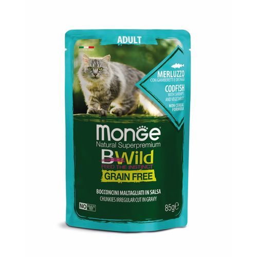 Treska s krevetami a zeleninou (zelené fazole a mrkev) je kompletní a vyvážené krmivo pro dospělé kočky. Navrženo s ohledem na blaho koček díky výběru alternativních zdrojů sacharidů (zelené fazole a mrkev), které nejsou odvozeny z obilovin, a krevety, jako zdroj proteinů s vysokou biologickou hodnotou. Receptura je obohacena o prebiotika nejnovější generace xylo-oligosacharidy (XOS) pro podporu střevní pohody. Obsahuje yucca schidigera pro kontrolu zápachu výkalů.