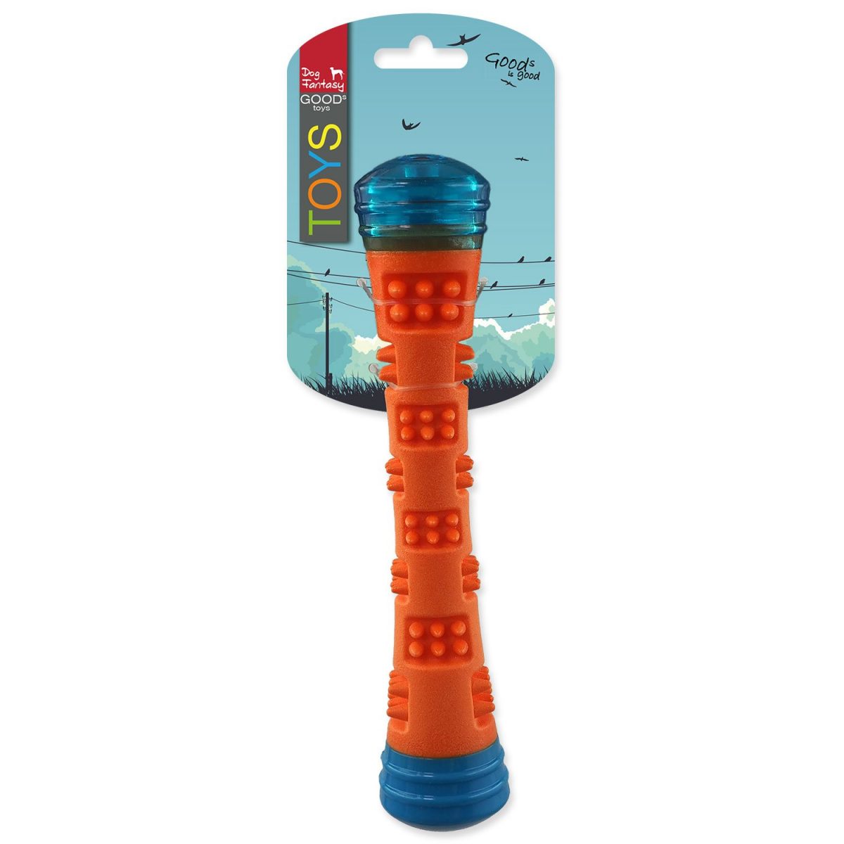 Hračka DOG FANTASY Kouzelná hůlka svítící, pískací oranžovo-modrá 4,6x4,6x23cm