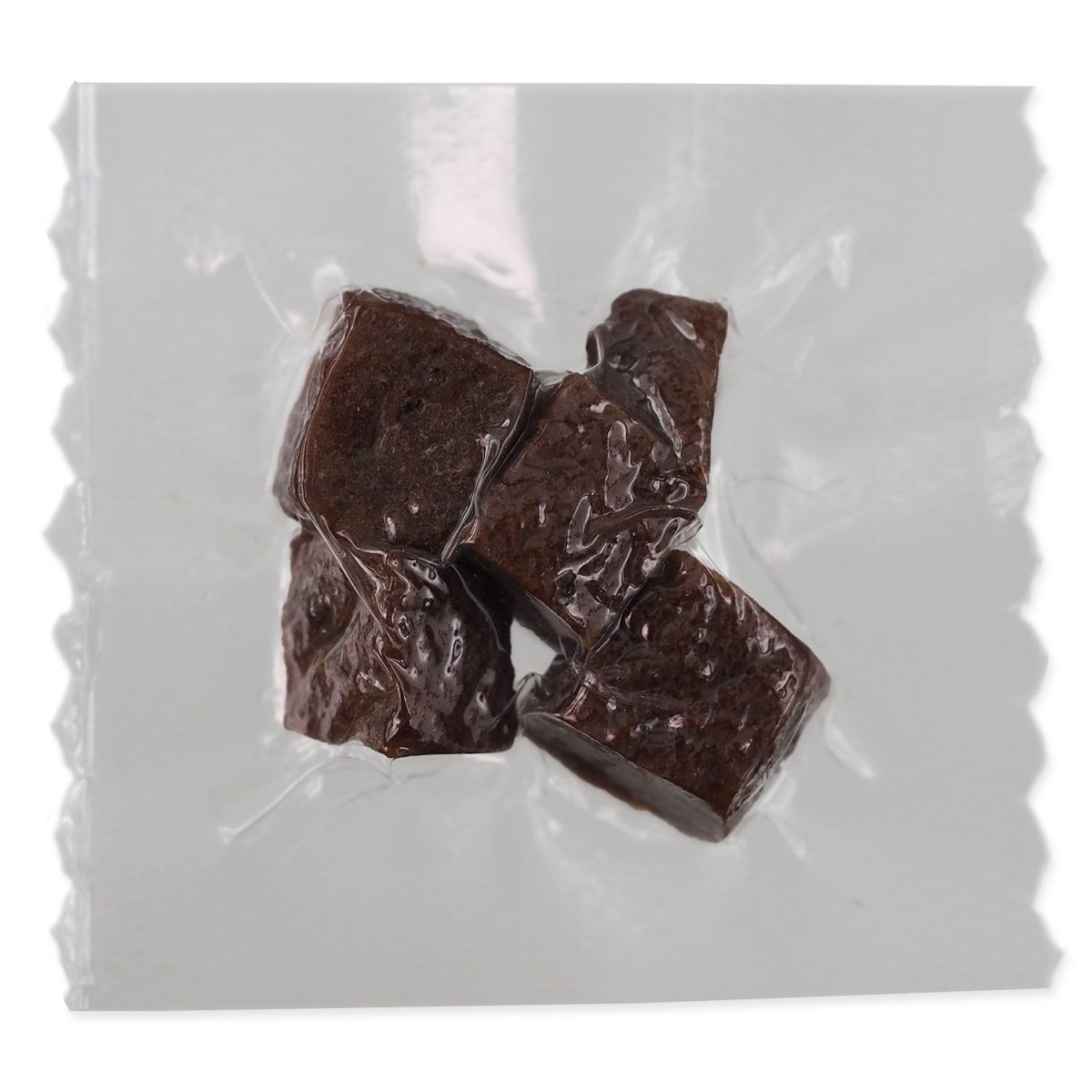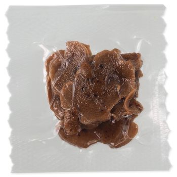 Složení: hovězí maso a vedlejší produkty hovězího původu 93,5 %, glycerin 2 %, rostlinný protein 2 %, sorbitol 2 %, máta 0,5 %
