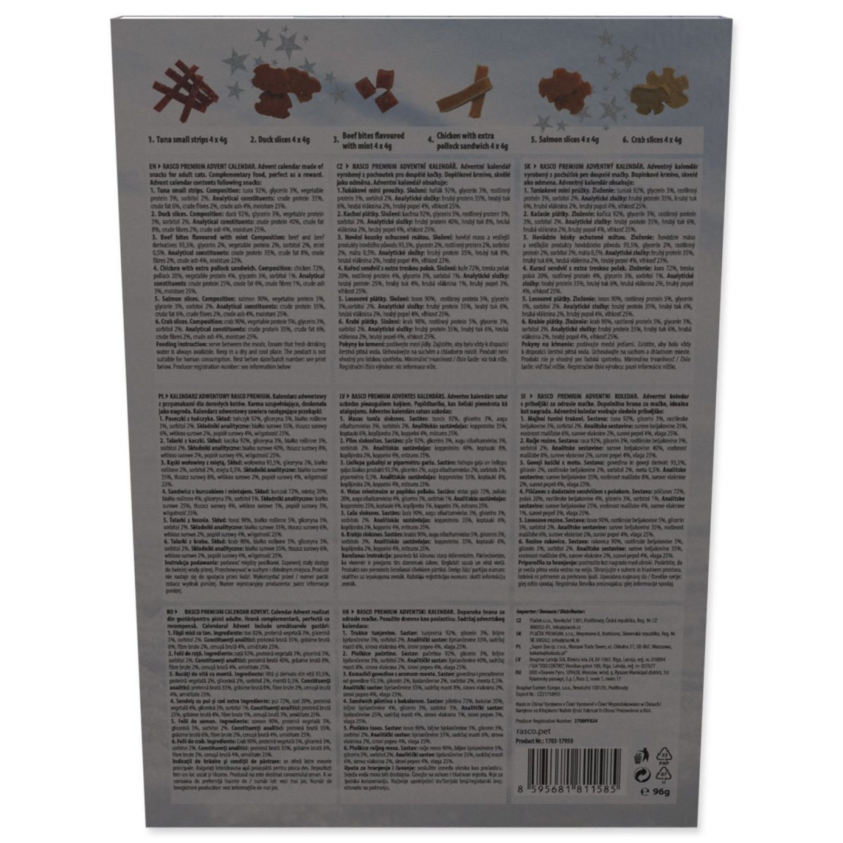 • RASCO adventní kalendář je vyroben ze šťavnatých pochoutek pro dospělé kočky