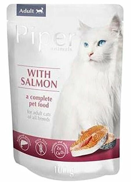 - složení: maso a výrobky živočišného původu 55 %, vývar, ryba a vedlejší produkty z ryb (10 % losos), minerální látky