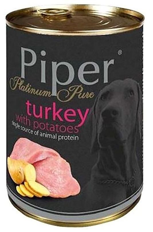 PIPER PLATINUM PURE krůta s bramborami, konzerva pro psy, 400 g.