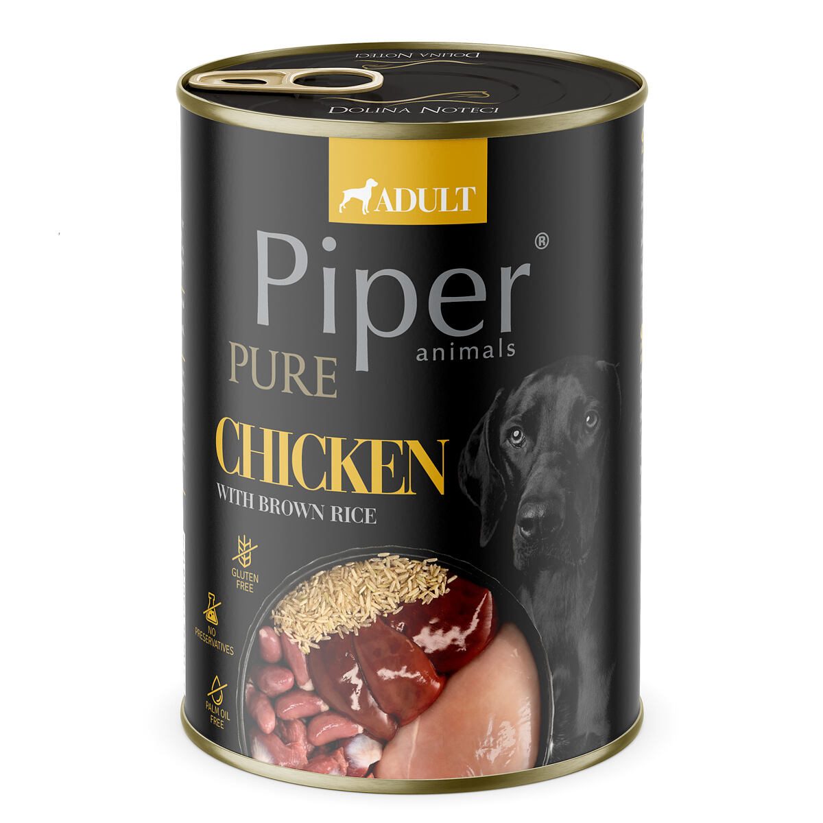 PIPER PLATINUM PURE kuře s hnědou rýží, konzerva pro psy, 400 g.