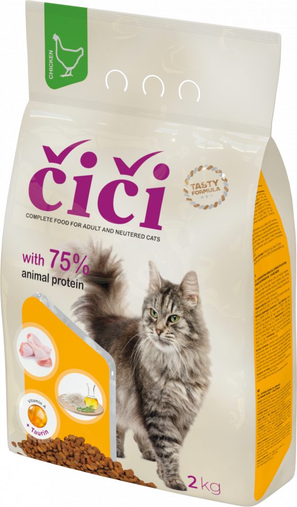 Kompletní granulované krmivo s delikátní chutí kuřete uspokojí každého kočičího labužníka. Jemné křupavé a barevné granulky v podobě kočičích hlaviček jsou připraveny pro mlsný jazýček kočky. Velikost a tvar jsou přizpůsobeny drobným kočičím zoubkům. Barva granulek je dána přídavky jednotlivých druhů zeleniny.