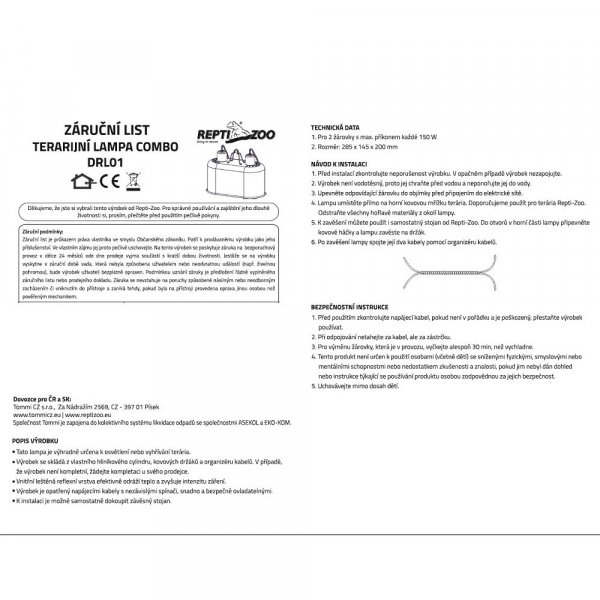 - Vhodná pro terarijní žárovky tepelné i světelné do maximálního výkonu 150W