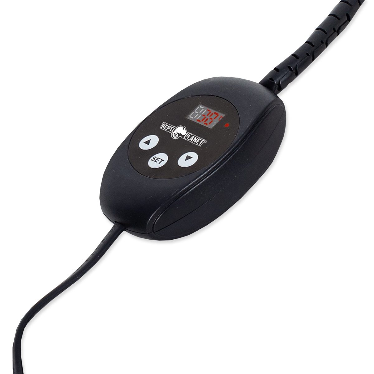 Termostat udržuje požadovanou teplotu v rozmezí 20 – 50 °C. Snadná instalace díky samolepící vrstvě. Vhodné pro terarijní a další zvířata.