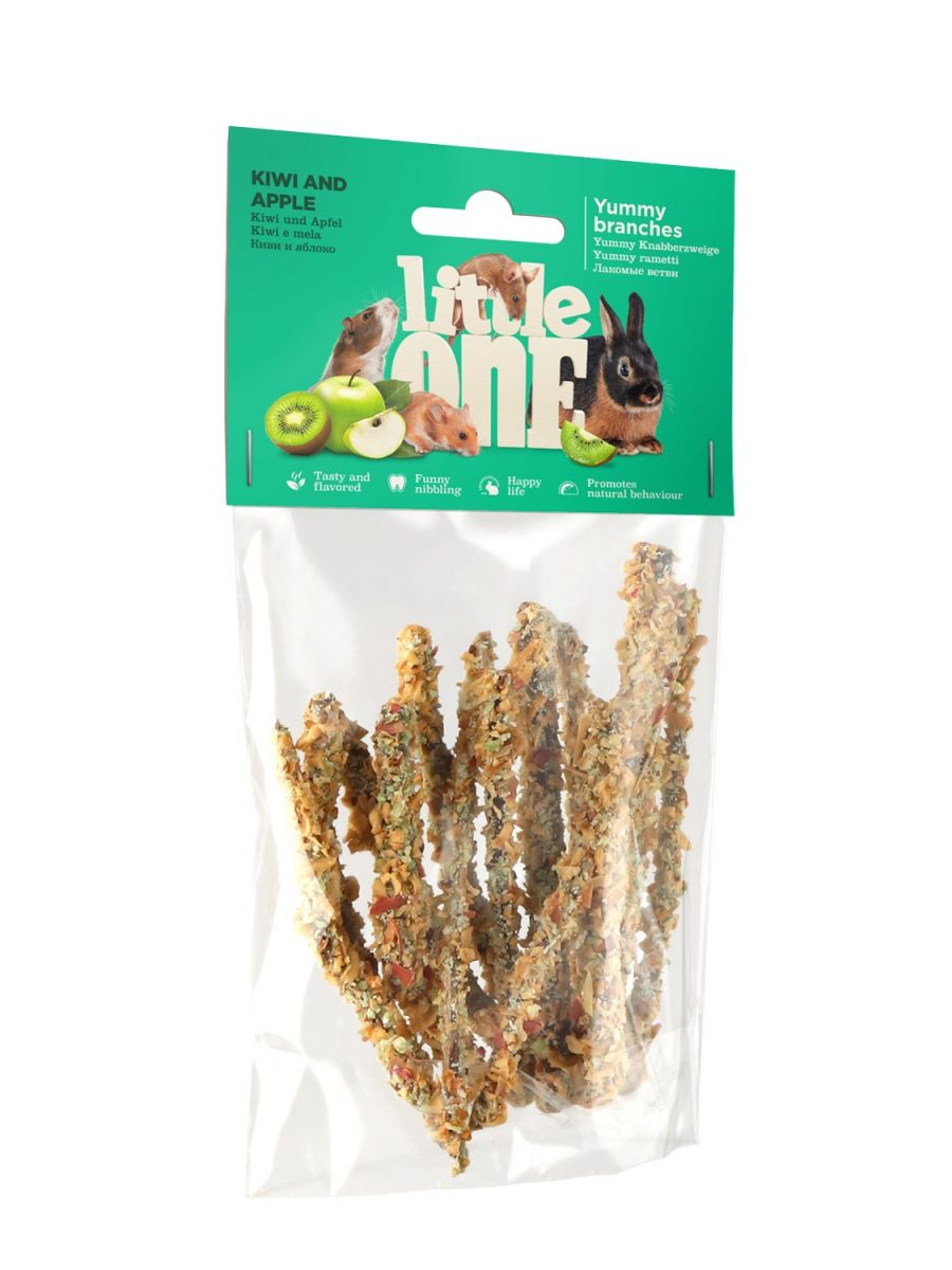 Větvičky jsou obalené jablky a kiwi, díky čemuž jsou opravdu lákavé, chutné a zdravé. Tento pamlsek je cenným zdrojem vitaminů a minerálů. Udržuje zvíře šťastné a přispívá k jeho přirozenému chování.