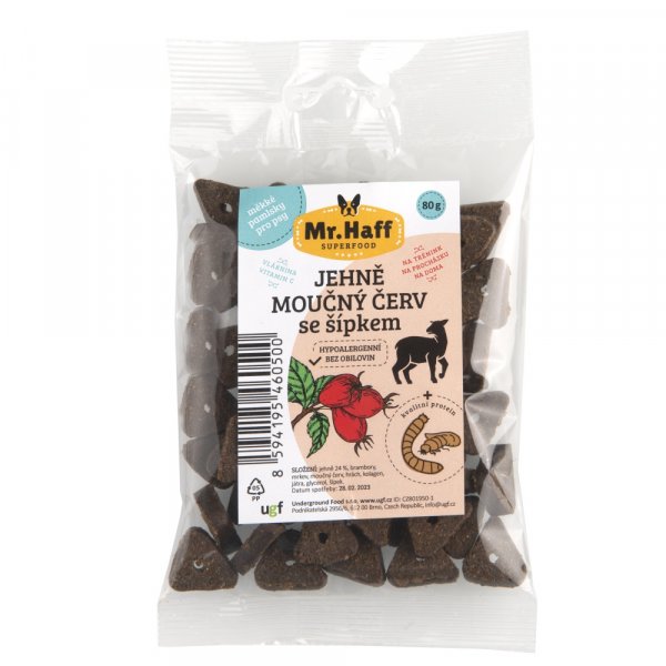Neobsahují obiloviny ani drůbeží protein, a proto jsou skvělou volbou pro psy trpící potravinovými alergiemi. Jehně-moučný červ a šípek je varianta, která obsahuje lehce stravitelný jehněčí protein obohacený o protein z moučných červů. Obsažený šípek díky vysokému obsahu vitamínu C posiluje imunitu a je vhodným doplňkem pro podporu pohybového aparátu.