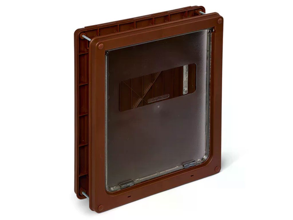 Dvířka pro psy Dog Mate 2-way Dog-Flap XL 2-cestná vhodná pro větší plemena psů, jako je labrador, německý ovčák a ostatní hafany s výškou ramen do 630 mm.