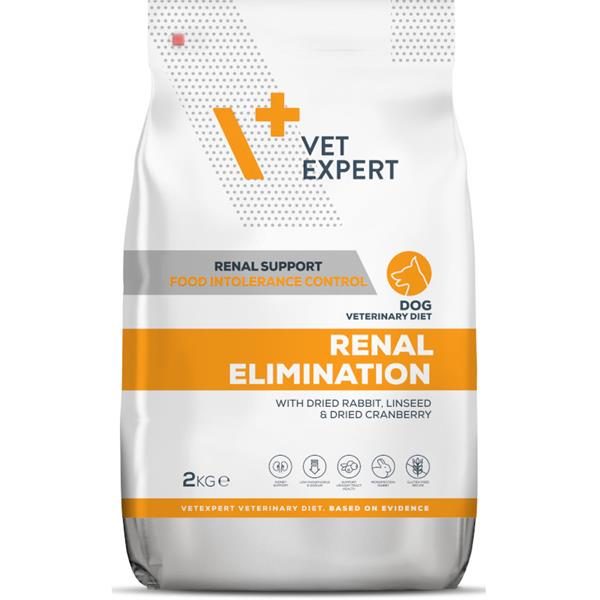 Chronické selhání ledvin je nevyléčitelné a jeho progresi lze zpomalit správnou léčbou a výživou. Pokud však selhání ledvin je diagnostikováno u psa se současnou nesnášenlivostí potravy, může být volba správné diety skutečnou výzvou. Hlavním cílem je najít produkt s jediným zdrojem bílkovin (monobílkoviny) nebo hydrolyzovanou bílkovinou, bez lepku a s nízkým obsahem fosforu a sodíku. Vzhledem k tomu, že Renal Elimination Veterinary Diet má bezlepkovou a jednoproteinovou (králičí) recepturu, s omezeným obsahem bílkovin (15,5 %), fosforu (0,4 %) a sodíku (0,2 %), může být tím správným řešením. Další výhodou je kachní tuk, který se v krmivu vyskytuje, protože podstatně zlepšuje kvalitu krmiva, především jeho chutnost. Brusinky zase napomáhají k ochraně dolních močových cest před potenciálními superinfekcemi.