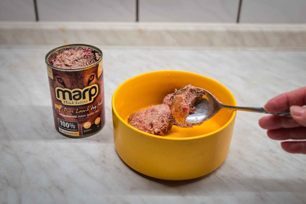 Víme, že pes je masožravec a proto ho jako takového ctíme. Konzervy Marp Pure obsahují 100% bílkovin ze živočišných zdrojů. Obsahují pouze maso, vnitřnosti, vývar a minerály. Nepoužíváme žádné umělé konzervanty, barviva, plnidla apod a jsou vždy bez jakýchkoliv obilovin. Konzerva Marp s jehněčím bez obilovin je vhodná pro psy s citlivým zažíváním a dle našich zkušeností je velmi vhodná i pro psy s potravními alergiemi.