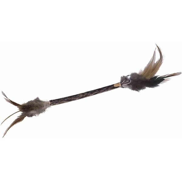Hračka pro kočky. Tyčinka Matatabi jejíž konce jsou doplněny peřím.