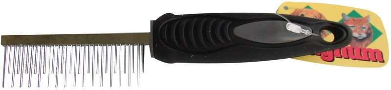 Hřeben se střídavými řidšími hroty pro precizní pročesání krátké, dlouhé i hrubé srsti s podsadou. Velmi komfortní měkčená a neklouzavá rukojeť.