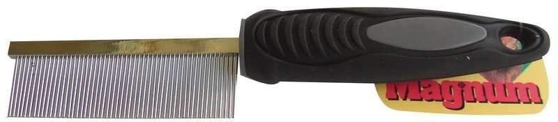 Hřeben s hustými hroty pro precizní rozčesání dlouhé srsti s odstraněním jemných nečistot. Velmi komfortní měkčená a neklouzavá rukojeť.