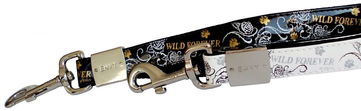 Lehké designové vodítko, pevné, a kvalitní chromovanou karabinou. Bílé nebo černé k výběru v detailu produktu.