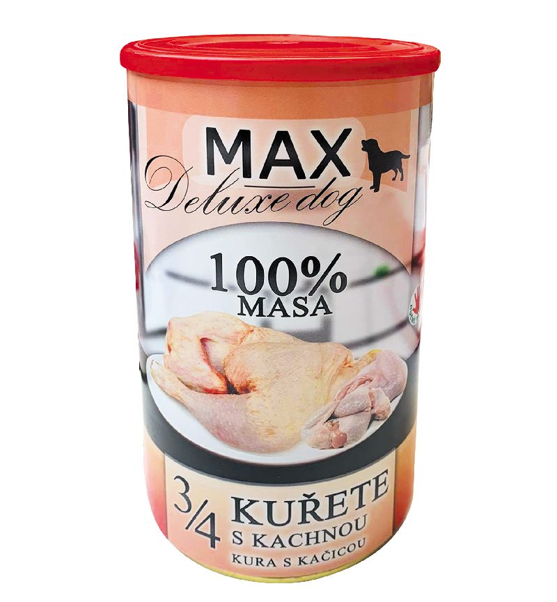 100% čisté maso z 3/4 kuřete a kachny. Česká, ručně plněná konzerva přirozeně konzervovaná, zcela bez chemických přísad a náhražek. Receptura sestavena přímo veterinářem.