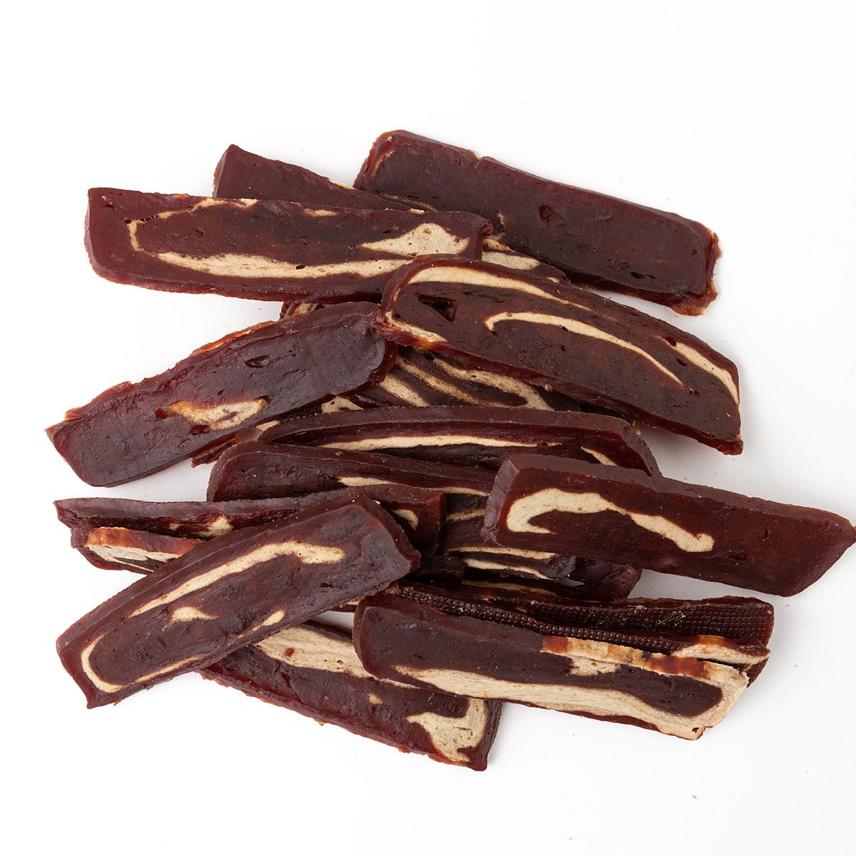 Měkká, přírodní masová pochoutka z jehněčiho a rybího masa, ve tvaru filetu, které se snadno dělí na menší kousky