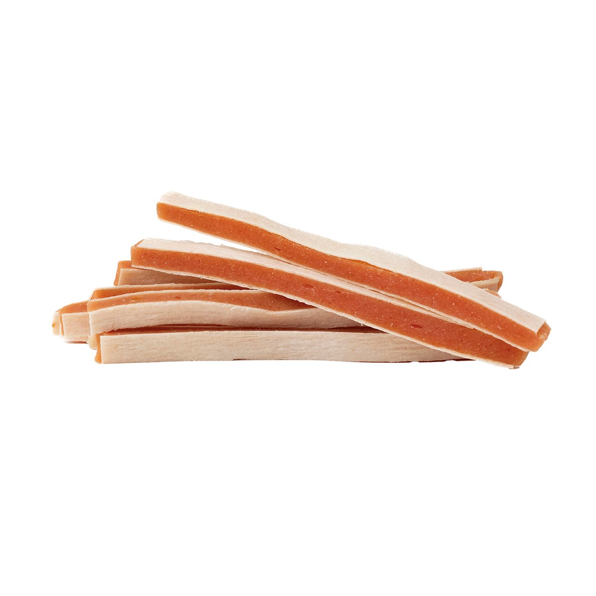 Měkká, přírodní masová pochoutka z kuřecího masa formovaná do měkkých proužků.