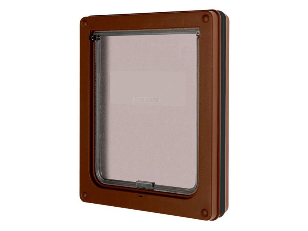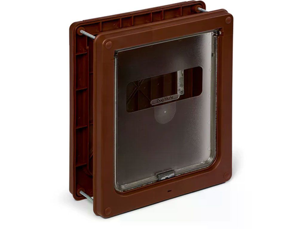 Dvířka pro psy Dog Mate 2-way Dog-Flap 2-cestná použitelná také jako dvířka pro kočku. Dvířka pro psy vhodná pro teriéry, pudly, španěláky a ostatní pejsky s výškou ramen do 460 mm.