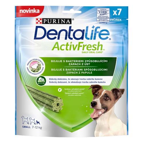 Vědecky dokázáno, že omezuje tvorbu zubního kamene. Zápach z úst vašeho psa může být známkou vážných zubních problémů, proto odborníci společnosti Purina vyvinuli Purina® Dentalife® ActivFresh®, který obsahuje přírodní spirulinu a med. Pomáhá bojovat se zápachem z úst a jeho příčinou.