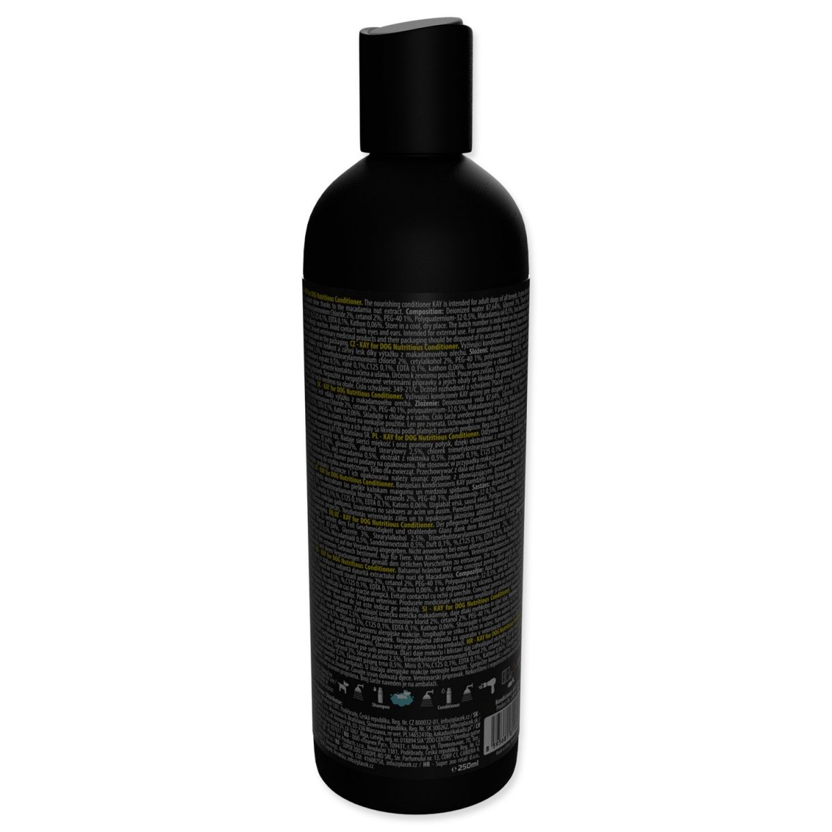 Kondicionér KAY for DOG 250 ml - Vyživující kondicionér KAY je určený pro dospělé psy všech plemen. - Dodává srsti hebkost a zářivý lesk díky extraktu z rakytníku. Olej z makadamových ořechů pomáhá zvlhčovat kůži a brání tak jejímu vysušování. Kondicionér je vhodný pro všechny typy kůže i srsti. Vhodný pro denní používání.