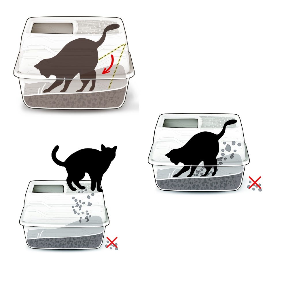 Díky hornímu průlezu nevyhrabe kočka stelivo ven a všechy nečistoty z tlapek popadají dovnitř díky žebrování okolo otvoru.