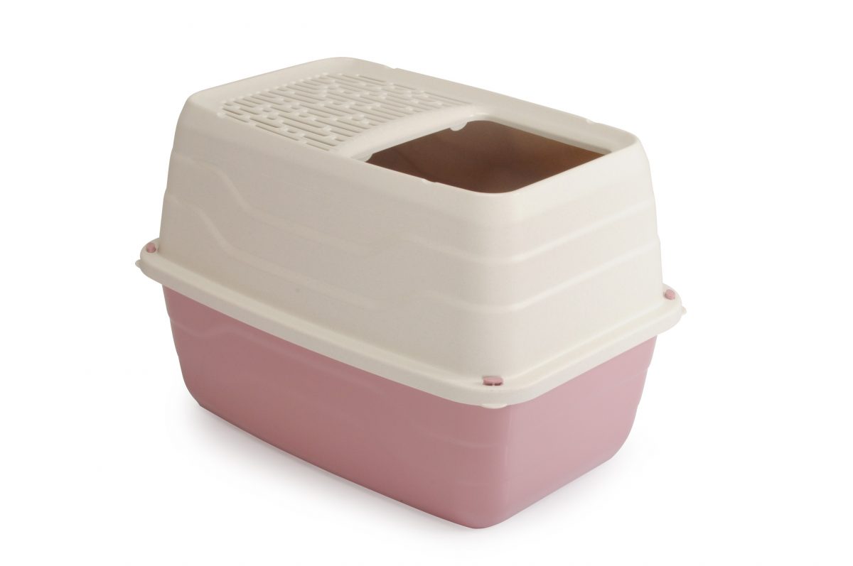 Uzavřené, prostorné wc pro kočky s horním průlezem z kvalitního odolného plastu.