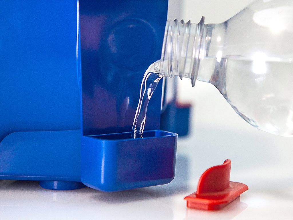 Vlhkost se reguluje manuálně za pomoci ručního dolévání vody do vnějších otvorů, které odvádí tuto vodu do kanálků-nádržek umístěnými pod základnou na líhnutí (plastovou mřížkou) ve spodním krytu líhně. Odpařováním této vody z nádržek vzniká požadovaná vlhkost v líhni => 45-55% s vodou v jedné nádržce a 60-65% s vodou v obou nádržkách. Optimální teplota doplňované vody se pohybuje okolo 25-30°C (nedoporučuje se voda studená). Pro trvalou kontrolu hladiny vlhkosti a automatické doplňování vody do líhně lze přikoupit automatický zvlhčovač vzduchu SIRIO.