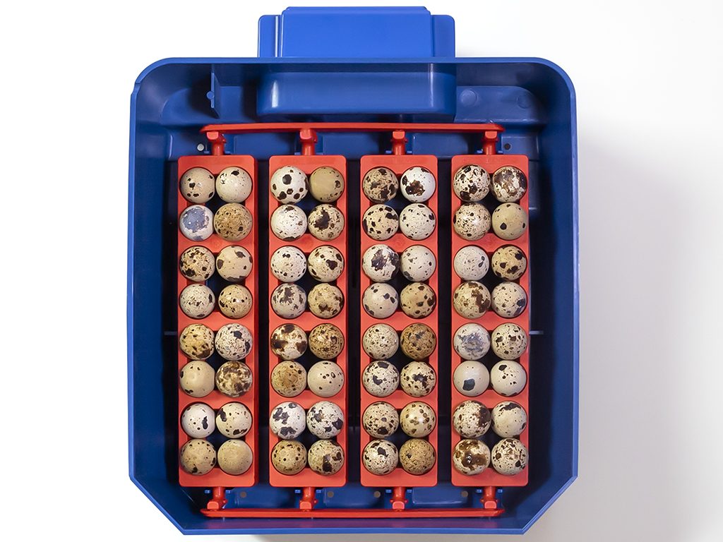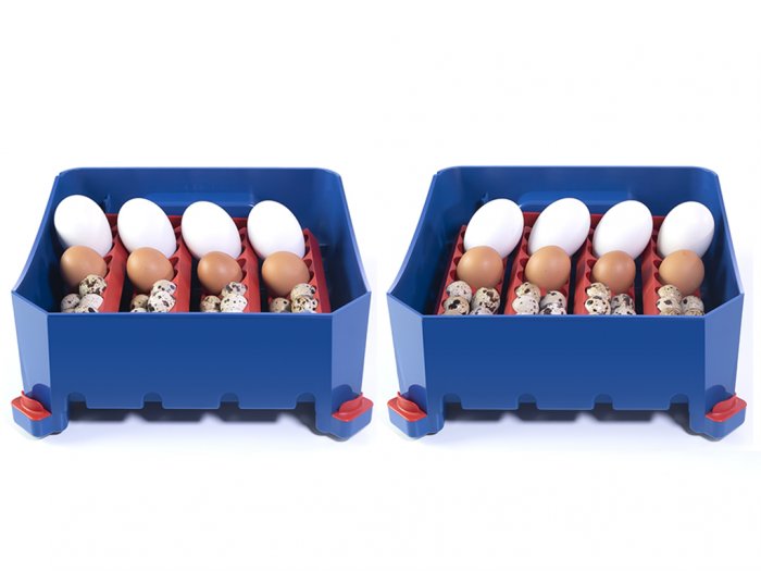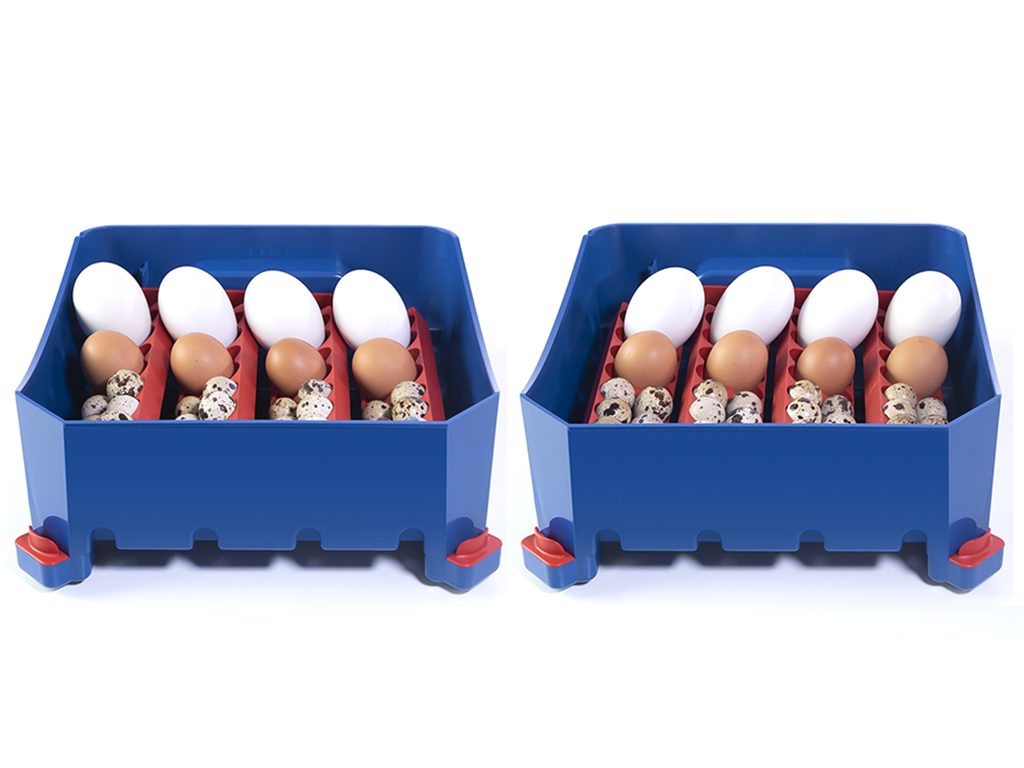 Kapacita s otočným roštem: 16 slepičích, 64 křepelčích, 16 husích, 16 kachních nebo 16 bažantích vajec.