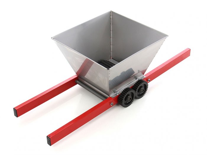 Drtič ovoce pro výrobu domácí šťávy či moštu, umožňuje jednoduchou přípravu hroznů, jablek, hrušek a dalšího ovoce k lisování a moštování. Drtič na ovoce je vybaven objemnou násypkou s kapacitou 15 l a s jeho pomocí tedy dokážete zpracovat až 200kg ovoce/hod. Drtič ovoce je dodáván s válci vhodnými pro drcení hroznů a jiných bobulovin a jako dárek navíc obdržíte také válce s noži, které Vám bez velké námahy umožní zpracovat také jablka, hrušky a dalšího ovoce. Rozměry drtiče: 85x55x34 cm.