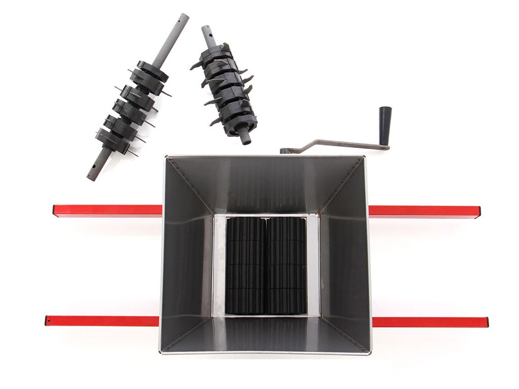 Drtič na ovoce vhodný k drcení hroznů, jablek, hrušek a dalšího ovoce, kapacita 15 l, hodinový výkon až 200 kg/hod. Pokud hledáte universální drtič ovoce pro výrobu šťáv nebo moštu z vlastí zahrady, pak si nemůžete vybrat lépe. Šrotovník na ovoce umožňuje jednoduchou přípravu ovoce k lisování a moštování. Drtič na ovoce dokážete hravě smontovat a dokonce si můžete podle svých potřeb snadno měnit dva druhy drticích válců. Drtič ovoce je totiž dodáván s válci vhodnými pro drcení hroznů a jiných bobulovin, ale jako dárek navíc obdržíte také válce s noži, které jsou ideální pro drcení jablek, hrušek a dalších jádrovin a peckovin. Ruční mlýnek na ovoce je vyroben z kvalitních materiálů a umožňuje používání po mnoho let.