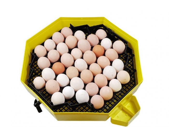 Kapacita s otočným roštem: 41 slepičích vajec nebo 41 kachních vajec. (součástí balení)