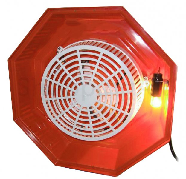 Unikátní odchovna drůbeže vhodná pro růst až 50 ks kuřat nebo 80 ks křepelek, o rozměrech 43x43cm. Jedná se o tzv. umělou kvočnu bez termostatu, s ventilátorem a s žárovkou. Tato odchovna zajistí kuřátkům dostatek tepla i světla v období, kdy ještě nejsou schopna vlastní termoregulace.