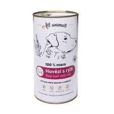 Masová konzerva pro psy s obsahem 95% hrubě namletého masa a s 5% rýže bez přidané želatiny, konzervantů, dochucovadel, barviv či stabilizátorů pro psy.