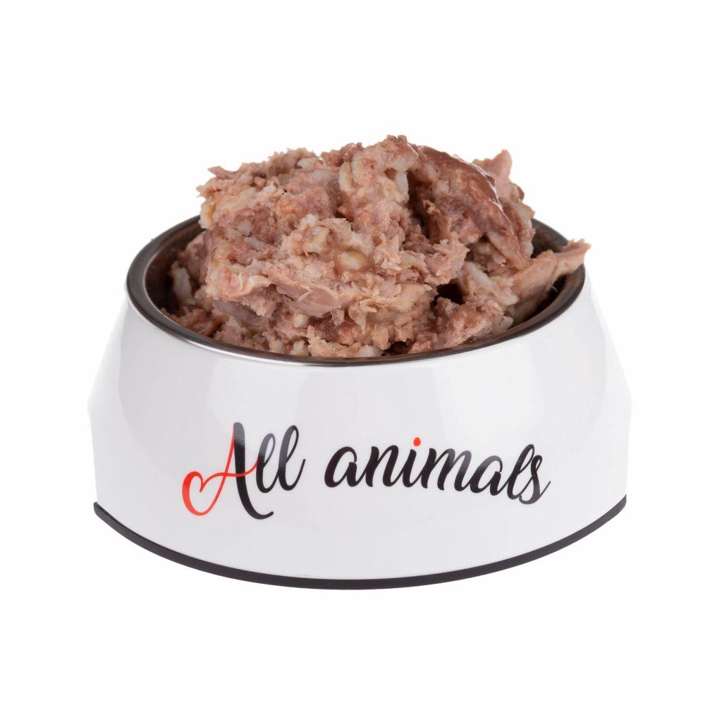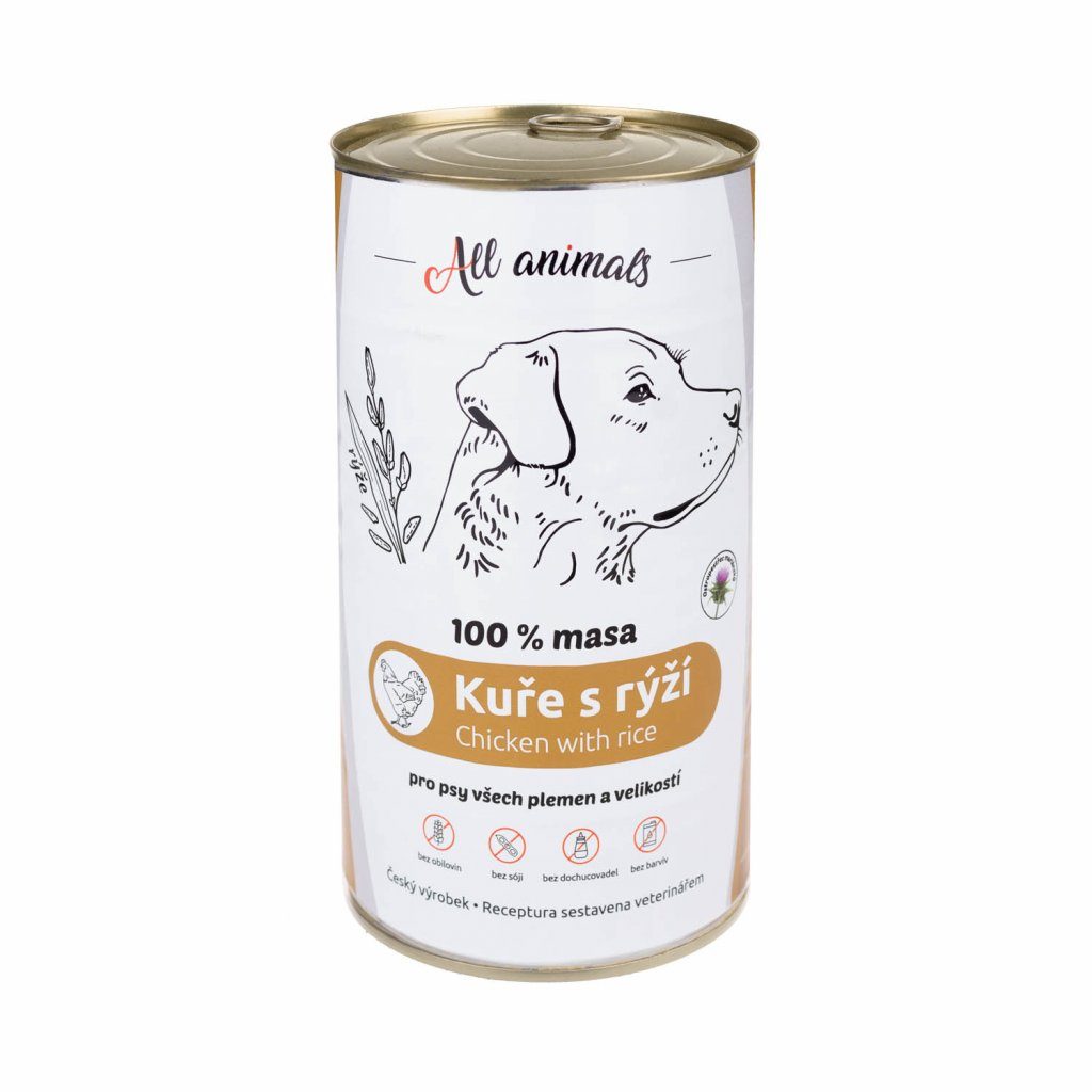 Masová konzerva pro psy s obsahem 95% hrubě namletého masa a s 5% rýže bez přidané želatiny, konzervantů, dochucovadel, barviv či stabilizátorů pro psy.